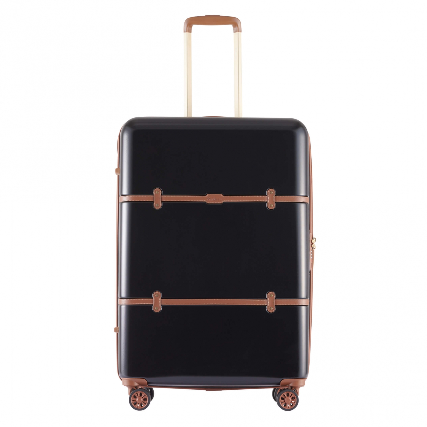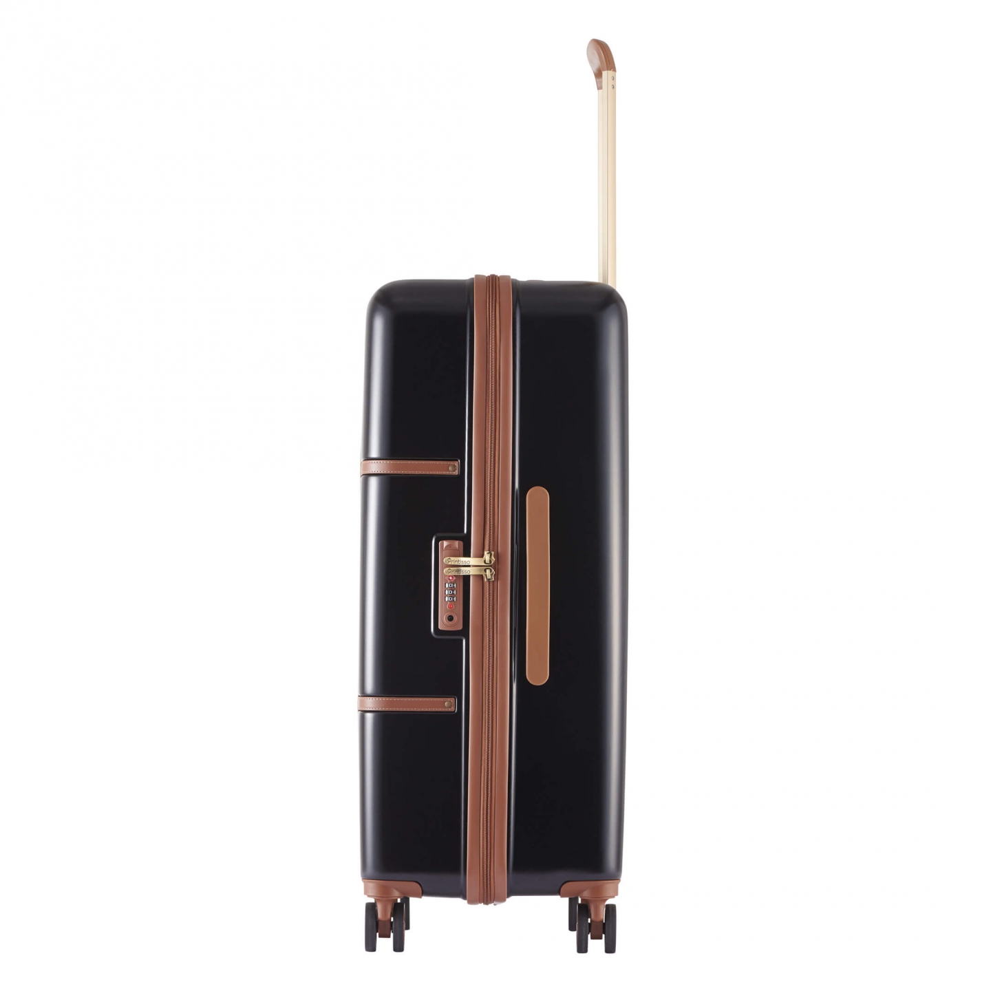 Teleskophåndtaket på denne store kofferten er både ståbilt og justerbart på flere nivåer. Det gjør det enkelt å bruke håndtaket. Skinnen er i flott, matt gull, som matcher resten av de flotte detaljene på kofferten. Det er behagelige og sterke bærehåndtak både øverst og på siden, noe som gjør det lett å gå rundt med kofferten uansett hvor du er.