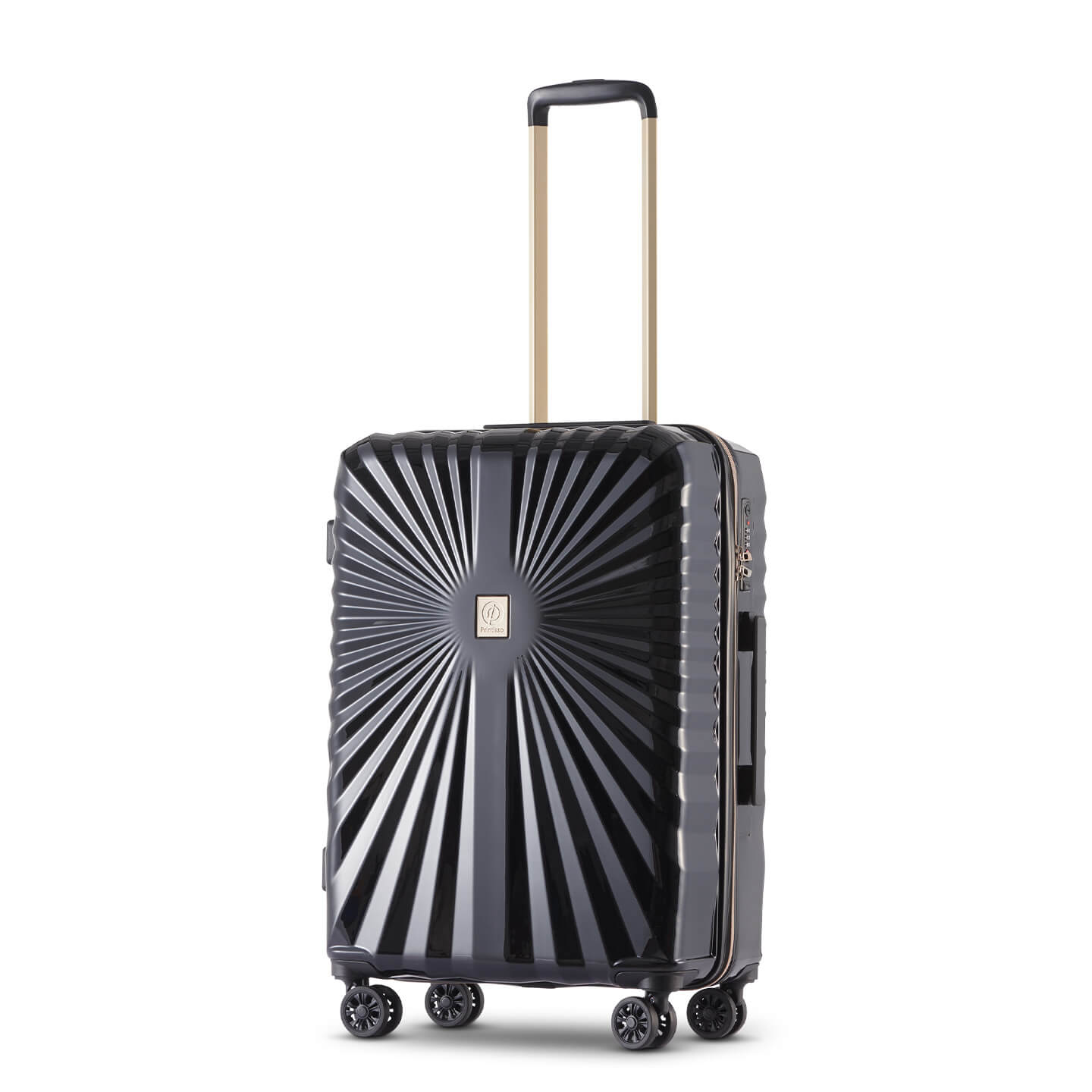 Teleskophåndtaket på denne mellomstore kofferten er stabilt og justerbart, og kan stilles inn på flere nivåer. Skinnen er i matt gull med et håndtak som matcher koffertens farge i Rich Black. Det er behagelige bærehåndtak på toppen og i sidene. Disse matcher kofferten, og gjør den enklere å håndtere.