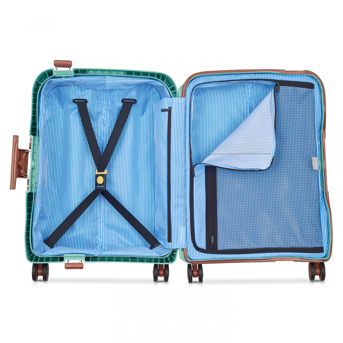 Delsey Moncey er en prisgunstig serie med harde og slitesterke reisekofferter fra Delsey. Nå også laget av resirkulert materiale for ekstra holdbarhet. Laget av sterkt polypropylen med en stilren og moderne design, er den et sikkert valg både på roadtripen og på flyreisen. Kofferten lukkes og låses lett med snaplås. Denne kofferten har bærehåndtak ikke bare på kortenden, men også på langsiden, noe som er uvanlig for kabinvesker! I motsetning til den vanlige modellen, er Delsey Moncey Slim ekstra slank og dermed lettere å få plass til i trange rom.