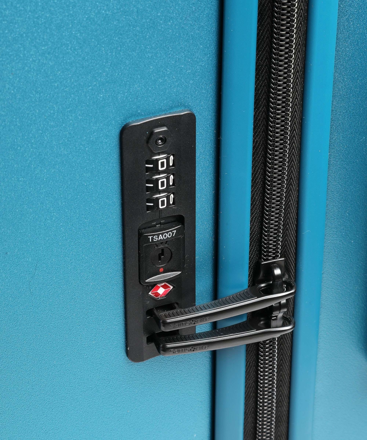 Integrert tresifret TSA-kodelås. Merk at nøkkelen kun kan innehas av tollvesenet. Flat avtrekker i glidelåsen for bedre beskyttelse mot støt.