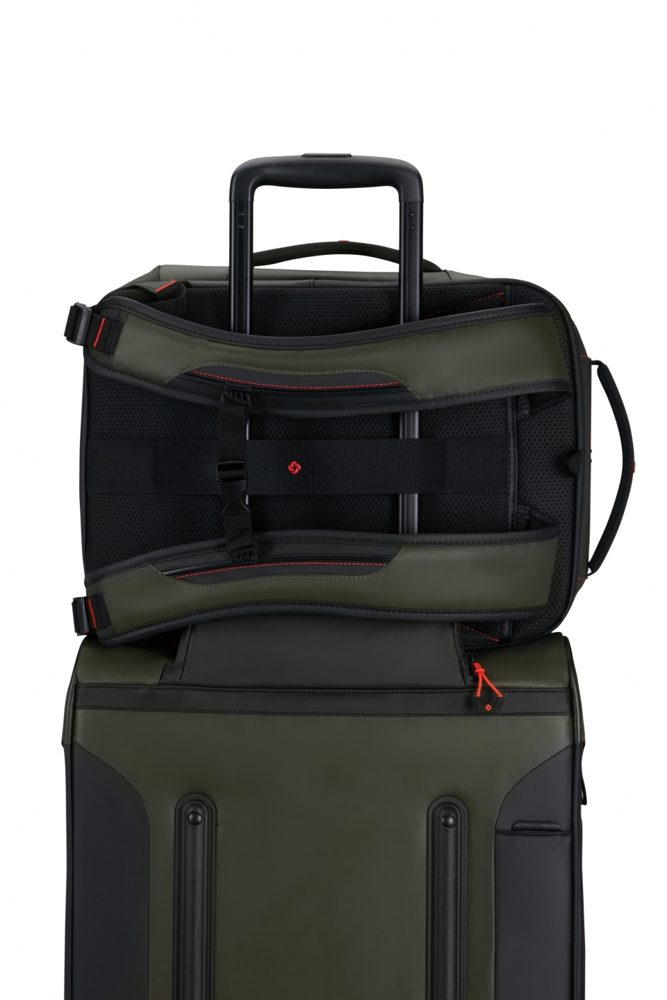 Samsonite Ecodiver S er en moderne underseater-ryggsekk som er perfekt som håndbagasje under flysetet og oppfyller de fleste flyselskapenes krav til målene 40 x 30 x 20 cm. Den er laget av resirkulerte materialer, hvor 100 % av ytterstoffets vekt kommer fra resirkulert nylon og PET-plast, noe som gjør den både holdbar og miljøvennlig. Materialet er vannavvisende for å beskytte innholdet mot lett regn. På utsiden finnes to frontlommer med glidelås for rask tilgang til småting, samt en smart sleeve-stropp på baksiden som gjør det enkelt å feste ryggsekken på et teleskophåndtak. Ryggsekken har også refleksdetaljer og plass til en vannflaske, noe som gjør den praktisk både på reise og til hverdagsbruk.