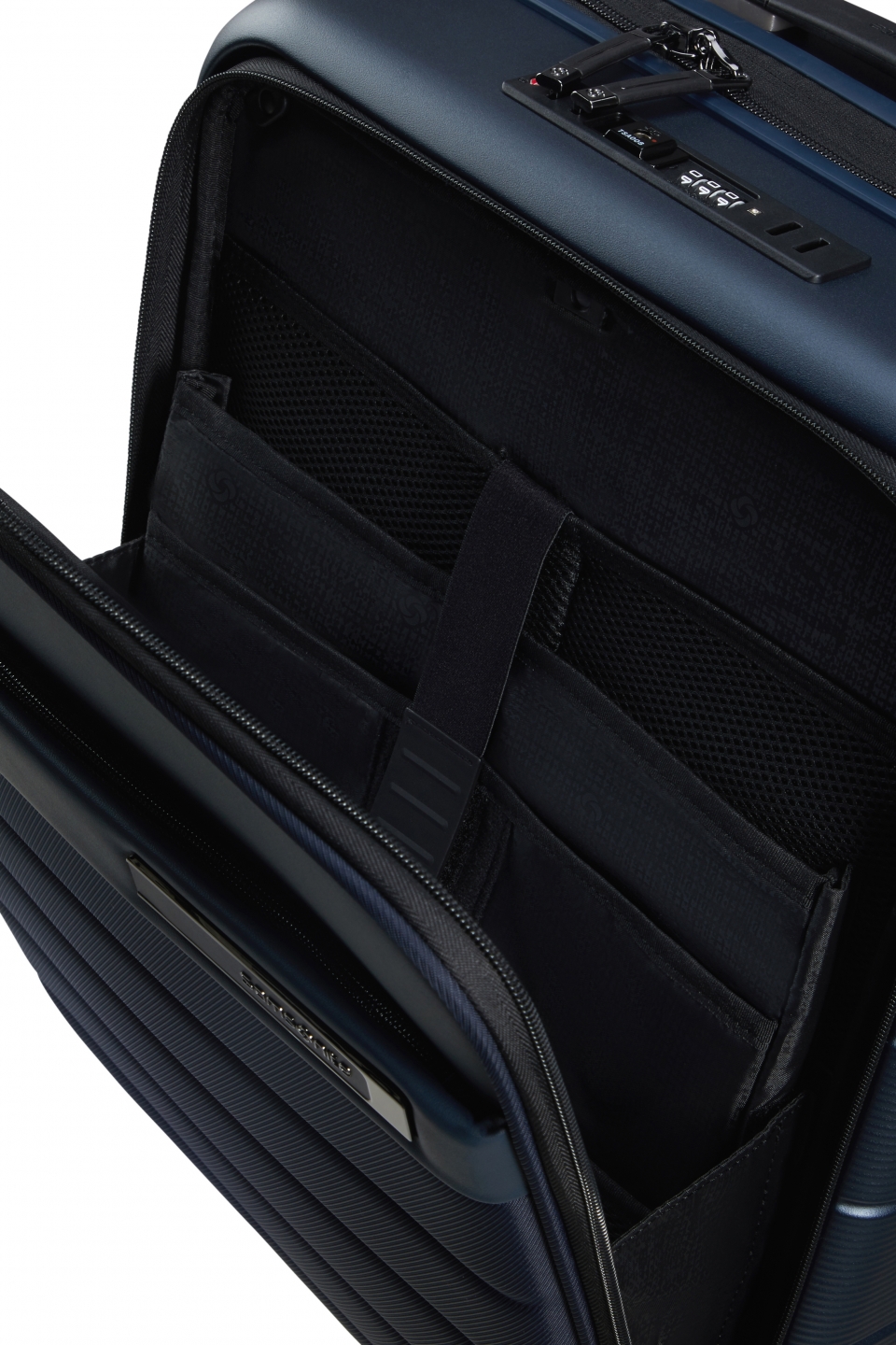 Inni finnes både pakkestropper og lukkbare lommer. I tillegg er det plass til en laptop og nettbrett med maksimal størrelse på henholdsvis 15,6 tommer og 10,5 tommer i frontlommen. Innerforet er avtakbart slik at du enkelt kan vaske det ved behov. Samsonite Neopod har alt du trenger for å holde orden!