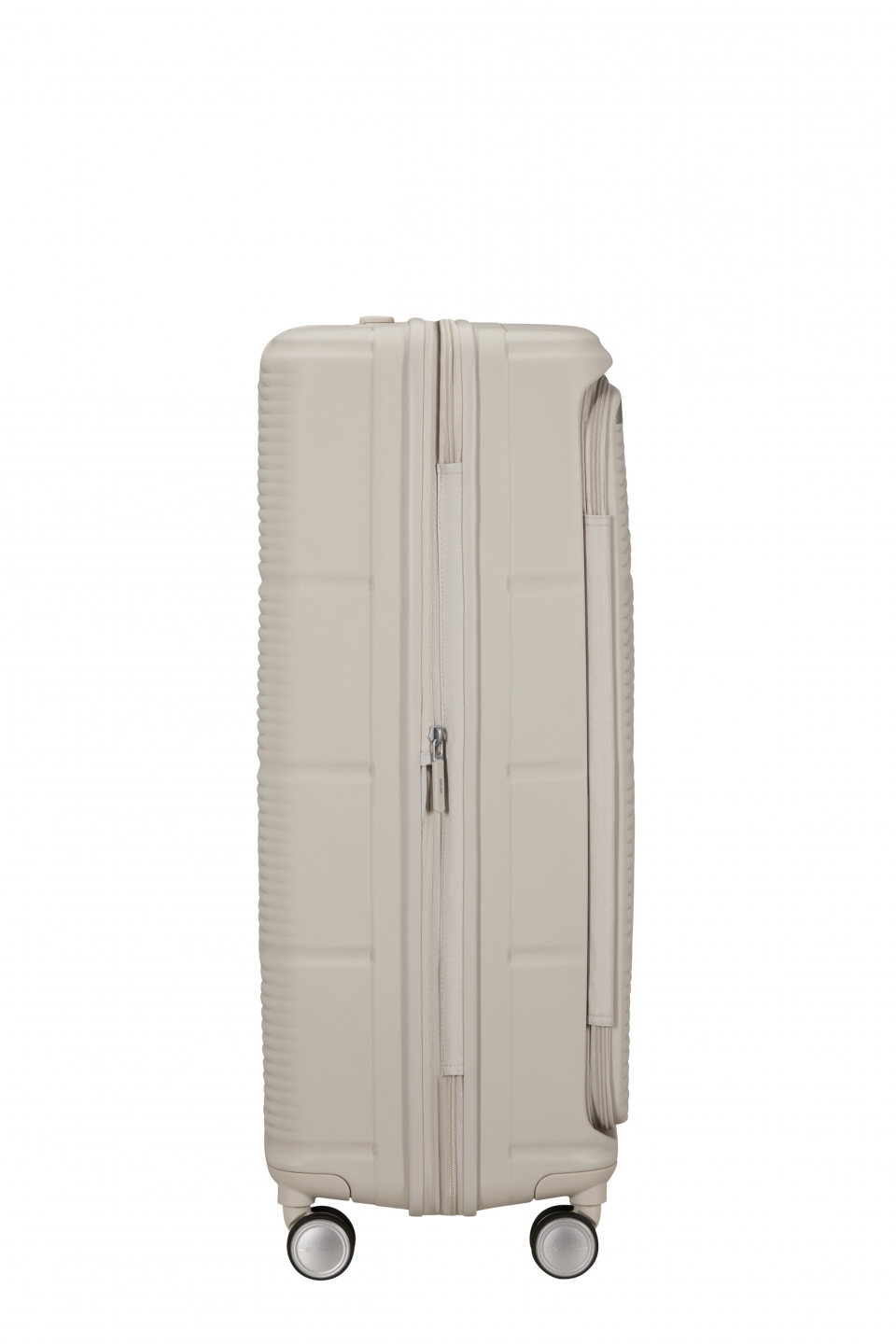Samsonite Paralux er en moderne koffert med et elegant og funksjonelt design. Den er laget i slitesterk polypropylen, hvor minst halvparten av materialet er resirkulert, noe som gjør den mer miljøvennlig. En unik kombinasjon av midtåpning og praktisk frontlomme gir fleksibilitet og enkel tilgang til innholdet. Med den ekspanderbare funksjonen kan du dessuten justere pakkvolumet – perfekt når du trenger litt ekstra plass.