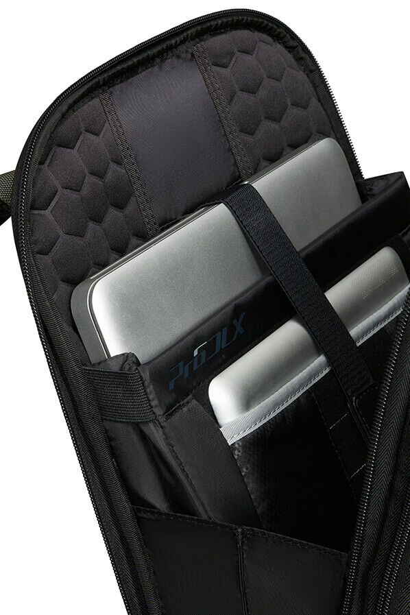 Samsonite Pro-Dlx 6 er moderne og funksjonell, uten å inngå kompromiss! Den stilrene yttersiden med skinn-detaljer gir et tidløst og smakfullt inntrykk. Ryggsekken har både frontlommer og sidelommer, slik at du kan organisere pakkingen din på best mulig måte! Ryggsekken har praktisk bærehåndtak på toppen samt ergonomiske ryggsekkremmer som matcher den øvrige designen. Dessuten er det en ekstra lomme på en av de to ryggsekkremmene, perfekt for oppbevaring av små gjenstander som du vil ha nær deg! Ryggsekken kan utvides, slik at du kan tilpasse den etter dine behov.