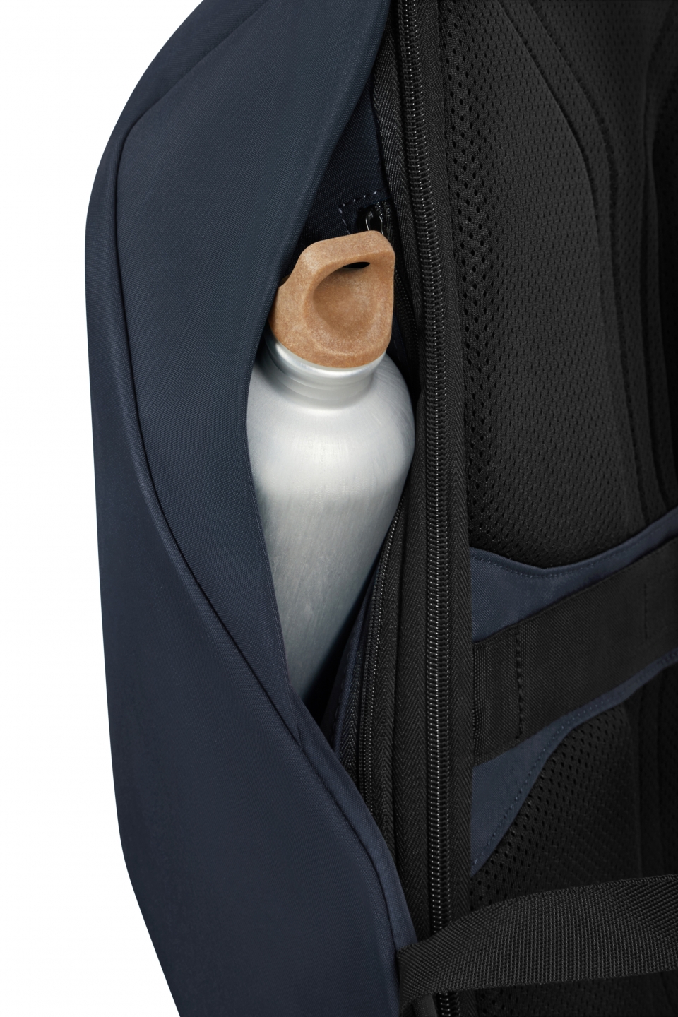 Innsiden har plass til en bærbar PC med maksimal størrelse på 15.6 tommer. I tillegg finnes det en separat lomme for et nettbrett med maksimal størrelse på 10,5 tommer. I tillegg er det flere lommer for intern organisering, samt en lomme for en powerbank.