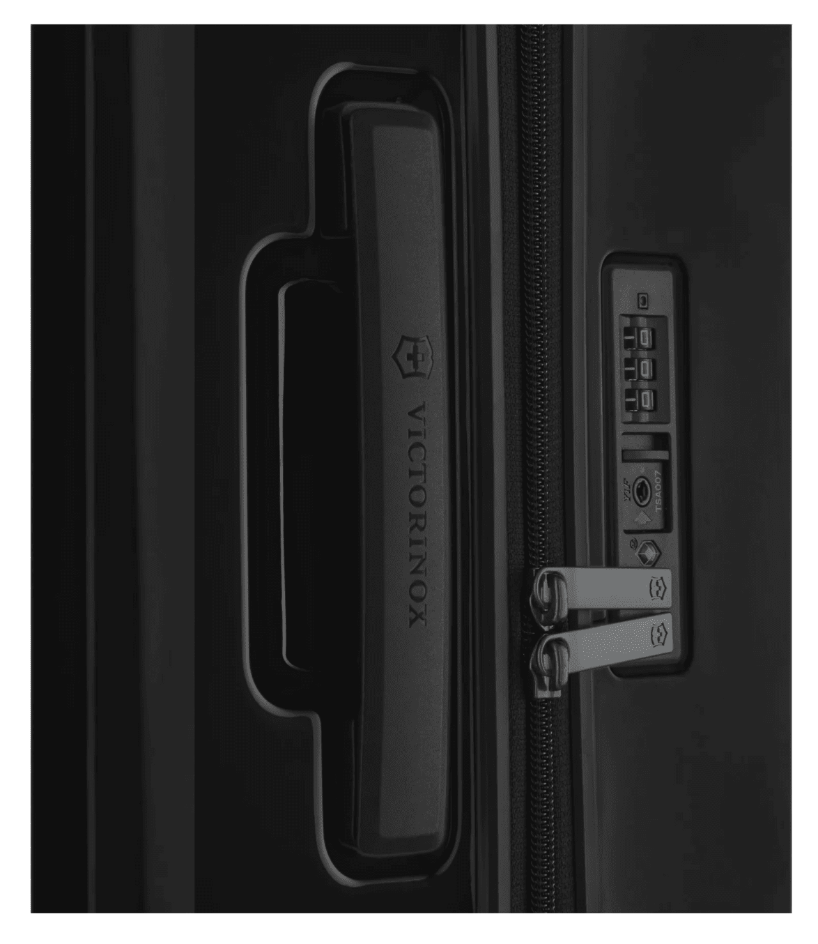 Integrert tresifret TSA-kodelås. Merk at nøkkelen kun kan innehas av tollvesenet. Flat avtrekker i glidelåsen for bedre beskyttelse mot støt.