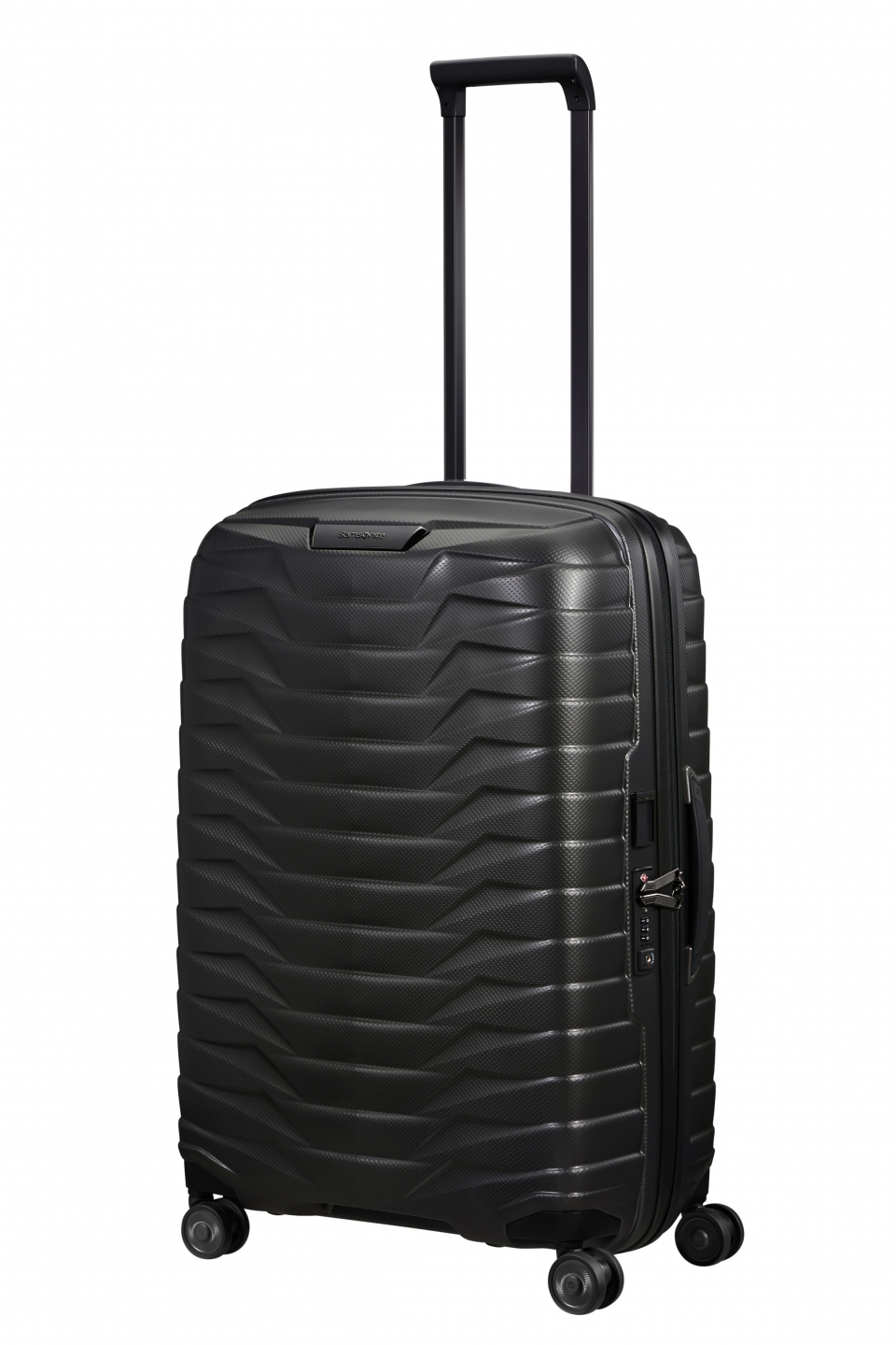 Proxis er Samsonites bestselger og produseres i Europa. Kofferten er laget med Samsonites egenutviklede materiale, Roxkin™, som er et flersjiktsmateriale som gjør den ekstra slitesterk, lett og med enestående motstandskraft. Den har en innfellbar integrert navnebrikke, slik at du enkelt kan merke kofferten din. Grønn strøm ble brukt i hele produksjonsprosessen av skallet.