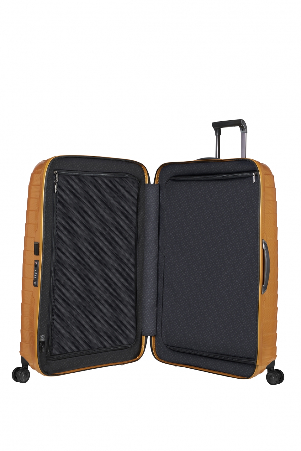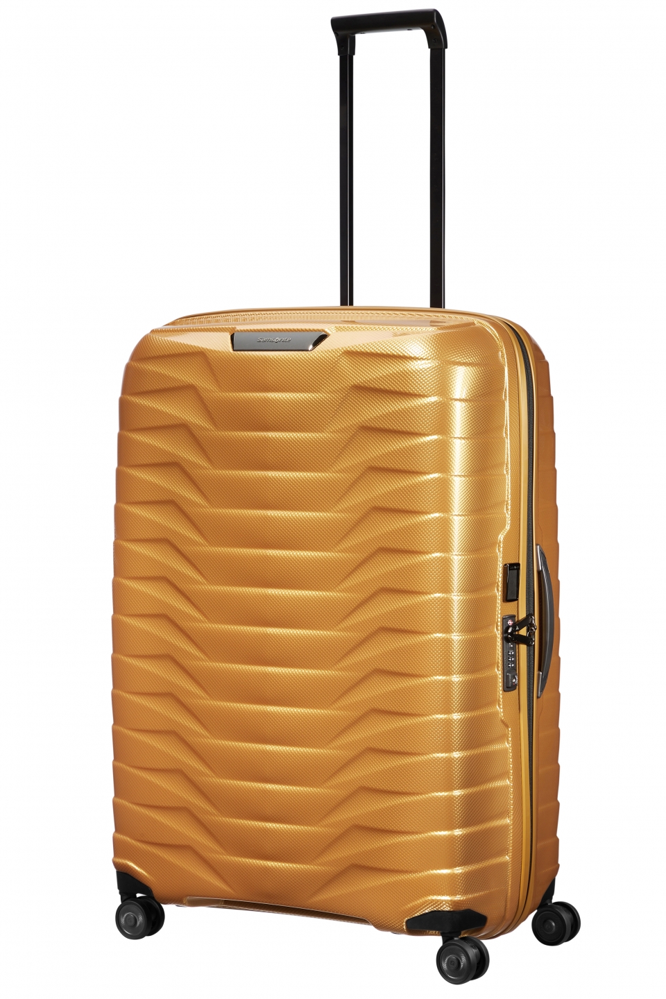 Proxis er Samsonites bestselger og produseres i Europa. Kofferten er laget med Samsonites egenutviklede materiale, Roxkin™, som er et flersjiktsmateriale som gjør den ekstra slitesterk, lett og med enestående motstandskraft. Den har en innfellbar integrert navnebrikke, slik at du enkelt kan merke kofferten din. Grønn strøm ble brukt i hele produksjonsprosessen av skallet.