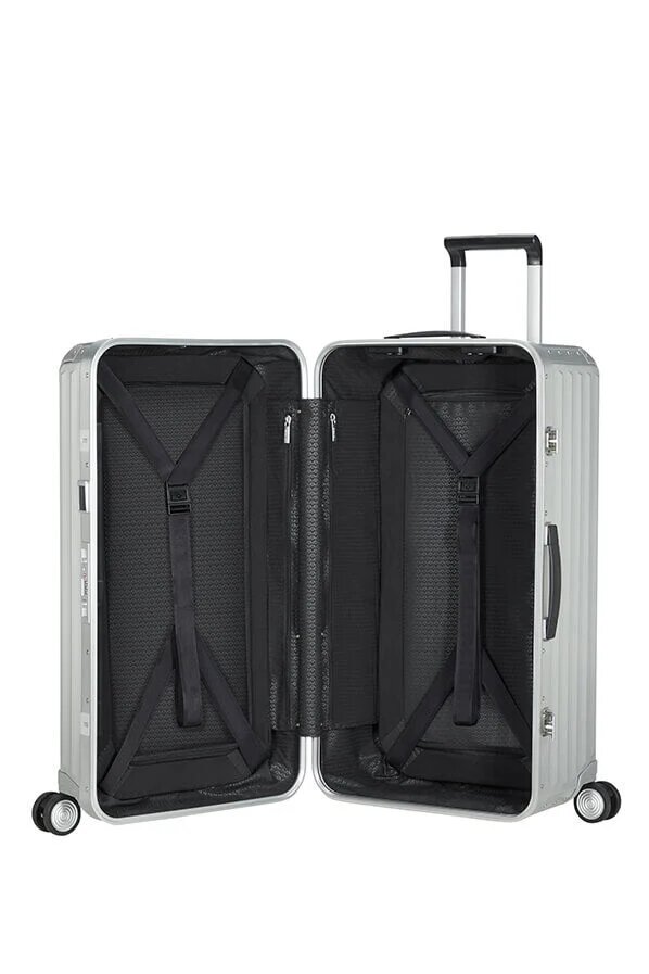 Eksklusiv innredning med godt planlagt innsiderom som maksimerer pakkemulighetene. To store lommer gir god oppbevaring. Denne kofferten har også to avtakbare skillevegger. To stropper som sitter på utsiden av den avtakbare skilleveggen. Komprimerbare kryssbånd i både bunnen og lokket som holder pakkingen på plass.