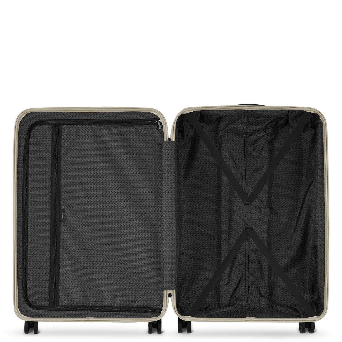 Urbane-serien er designet med et eksklusivt og smart interiør, slik at du kan pakke fleksibelt. Kofferten har et rom som kan deles i to, slik at det er mulig å holde de ulike eiendelene dine adskilt. Det finnes også en stor lomme til personlige eiendeler. Det andre rommet er utstyrt med elastiske klemmer, slik at eiendelene holder seg på plass. Kofferten har med andre ord alt du trenger for å holde orden når du er ute og reiser. Interiøret er luksuriøst foret med Printissos ikoniske P-mønster, og har detaljer i matt sort.