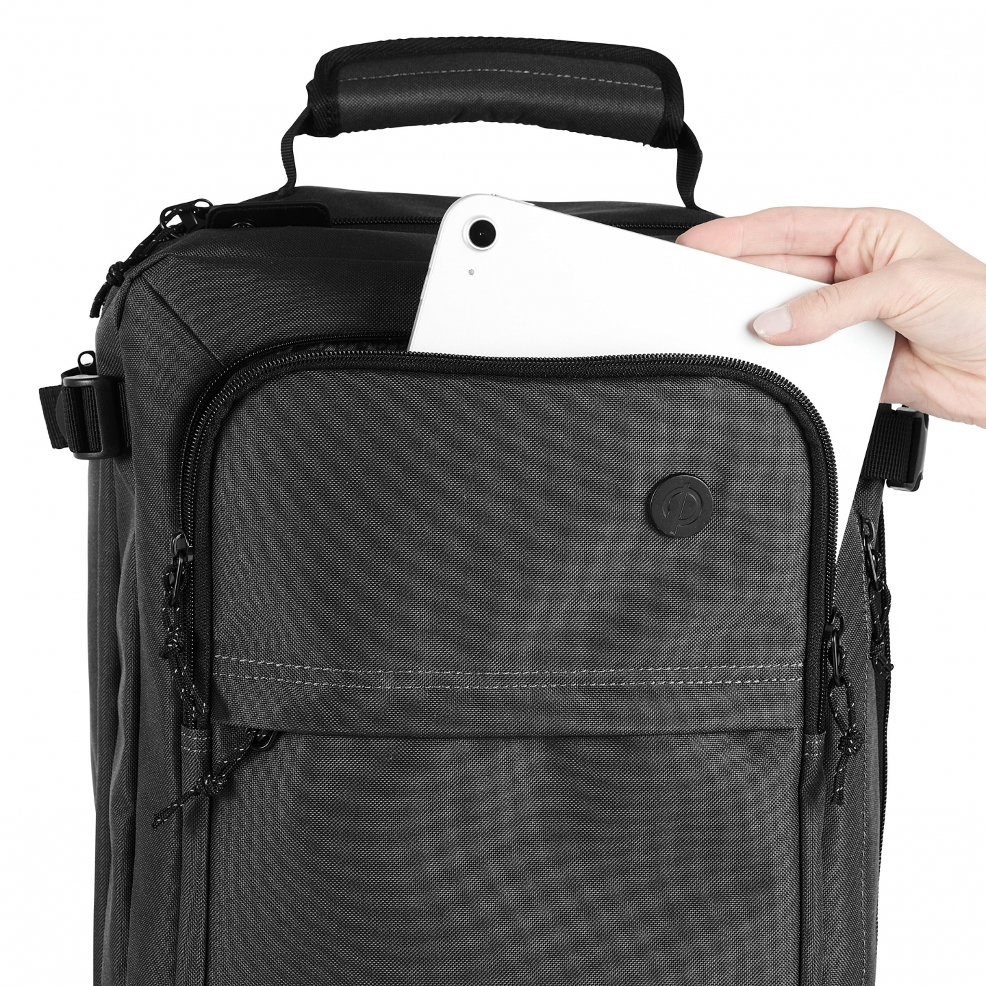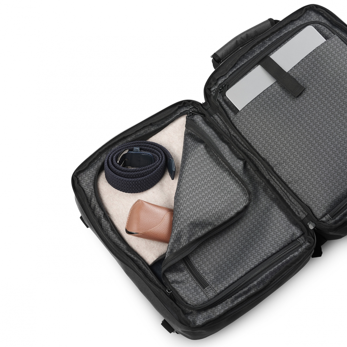 Ryggsekkremmene er ergonomiske og gjør sekken enkel å bære. Den kan også bæres som en portefølje med hjelp av sidehåndtakene. Både ryggsekkremmer og sidehåndtak kan foldes inn i egne lommer, noe som gjør det enkelt å sjekke inn sekken om nødvendig. I tillegg finnes en rem på baksiden som gjør at sekken kan festes på teleskophåndtaket på kofferten, noe som er praktisk når du vil bevege deg smidig.