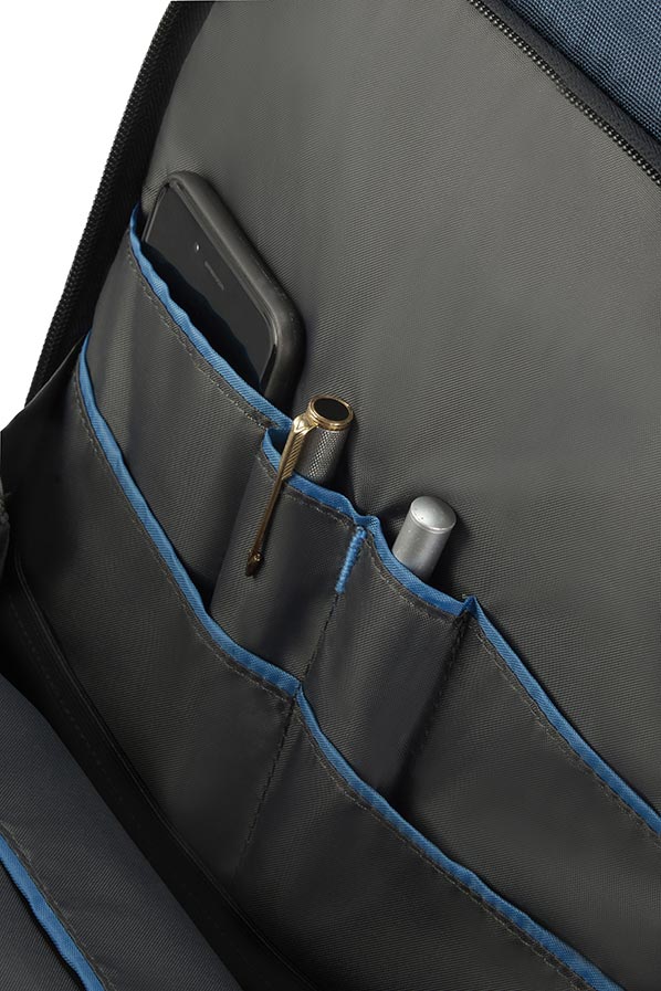 Vesken er utstyrt med mange lommer og rom slik at du kan organisere all pakking. Datamaskinrom for skjerm opptil 15,6 tommer, nettbrettrom, penneholder, mobillomme og lomme for kabler.
