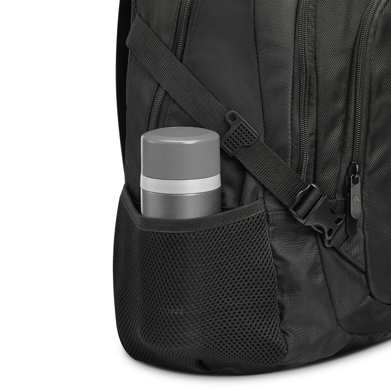 Delsey Element Computer Backpack er en sikker og stilig veske med mange funksjoner. Det er to store frontlommer, topphåndtak, flaskeholder og stropp på baksiden slik at du kan feste vesken til en koffert. Det er også stropper slik at vesken sitter kompakt.
