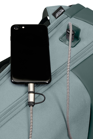 Stacked Biz er en stilig forretningsryggsekk for begge kjønn. Sekken har smarte funksjoner for den moderne reisende. Vesken har en USB-port slik at du enkelt kan lade dine elektroniske dingser. Det er frontlomme og sidelomme, topphåndtak, flaskeholder og Smart Sleeve slik at du kan feste vesken til en koffert. Ryggsekken er vannavstøtende og laget av resirkulert materiale!