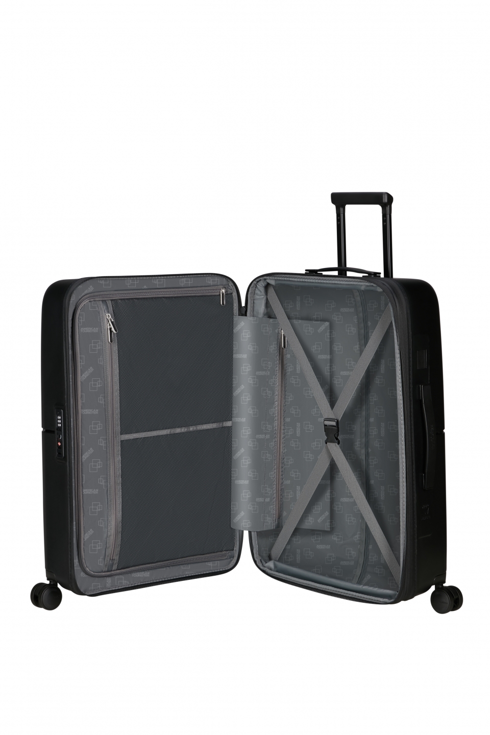 Innvendig finnes et forseglet rom med lommer på den ene siden samt justerbare elastiske pakkestropper på den andre. I tillegg er det en praktisk mellomrom hvor du kan oppbevare mindre gjenstander. Detaljene i koffertens interiør matcher den lekne designen på utsiden, noe som gir et enhetlig og stilrent inntrykk. Med American Tourister Dashpop kan du være sikker på å holde orden og reda med stil!